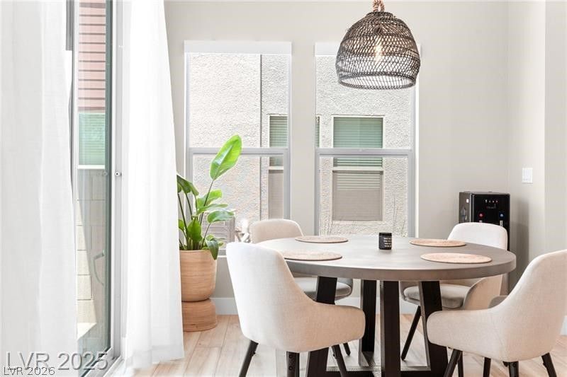 This is the most highly improved home in the neighborhood! Furnishings optional! Extremely well maintained Tri Pointe home in one of the fastest-growing areas of the Southwest, just minutes from the I-15. Open-concept floor plan features three bedrooms, two and a half baths, and a furnished interior with modern design t/o. The kitchen boasts a large quartz island, SS appliances, and upgraded designer cabinetry. Standout features include a custom wood slat wall in the living area, dramatic floor-to-ceiling wood paneling in the stairway, modern stair railing, upgraded designer light fixtures and finishes, and bright natural tones throughout. Abundant natural light flows through the home, highlighting the spacious upstairs loft with walk-in closets and the large primary retreat with dual sinks and a walk-in shower. Thoughtful finishes, a downstairs powder bath, and a two-car garage complete the package. Community pool and all the conveniences of a booming Southwest location.